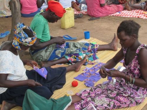 Women working on their quilts